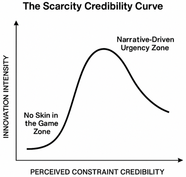 Many organizations try to spark innovation by imposing artificial constraints like tight deadlines or hackathons, hoping to replicate the ingenuity born of necessity. Yet research shows these often fall short. This article contrasts “authentic scarcity”, conditions of irreversible consequences and existential urgency, with artificially imposed constraints. Only the former reliably activates the psychological, cultural, and systemic drivers of transformative innovation. Through case studies of Mumbai’s Dharavi slum and Silicon Valley’s frugal innovation labs, we show how real constraints foster resilience and radical problem-solving, while artificial ones yield superficial creativity. We present a strategic framework for leaders to engineer purpose-driven missions with real stakes, collaborate with necessity-driven ecosystems, and cultivate high-stakes leadership. The paper concludes with a theory of authentic scarcity, explaining how genuine constraints uniquely drive breakthrough innovation by triggering focus, cohesion, and urgency, offering crucial insights for innovation management in resource-rich settings.