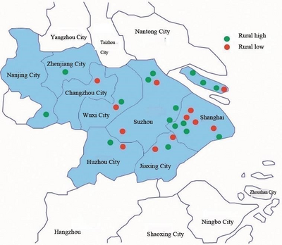 The study focuses on rural vegetation in the Yangtze River Delta, selecting five villages in northern Zhejiang and multiple villages in southern Jiangsu and Shanghai for comparative analysis. The villages are categorized into high rural nature, dominated by agriculture, and low rural nature, dominated by industry and services, to explore the characteristics of water town areas.