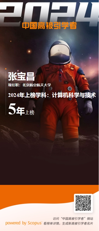 On March 25, 2025, Elsevier officially released the 2024 “Highly Cited Chinese Researchers” list. This list comprises 6,388 scholars from 547 universities, enterprises, and research institutions, spanning 83 first-level disciplines across 10 subject areas defined by the Ministry of Education (MOE). Congratulations to Prof. Baochang Zhang, a distinguished member of the journal's editorial board, on being honored with a place on the list for the 5th times. ![]() Beihang University China More personal details, please find it here. ![]() All the information is from Elsevier. For any inquiries regarding the development and methodology of the list, please direct your questions to the “Highly Cited Scholars Program Working Group” via email at: elseviermarketing@elsevier.com |